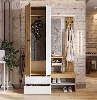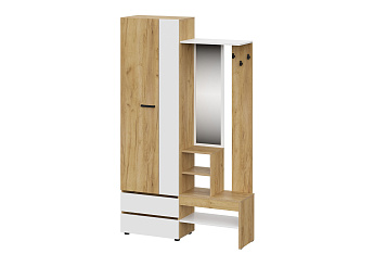 Вешалка с зеркалом Абрау (Дуб Золотой/Белый), FI