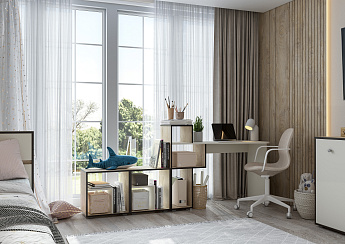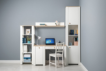 Стол Джастин письменный 12.154 (Белый PE шагрень/Дуб Белый exclusive OW D4430), Моби