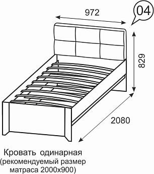 Кровать одинарная Твист 04 (900х2000) (Молокай), Иж