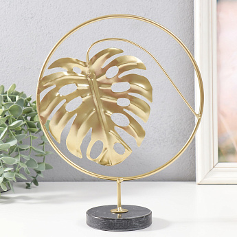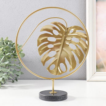 Сувенир "Круг с листом монстеры" золото, черный 20х7,5х25см/9862417