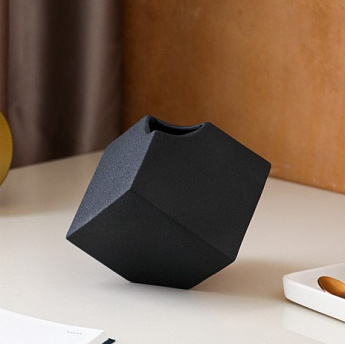 Ваза Куб чёрный 12 см керамика/4846886